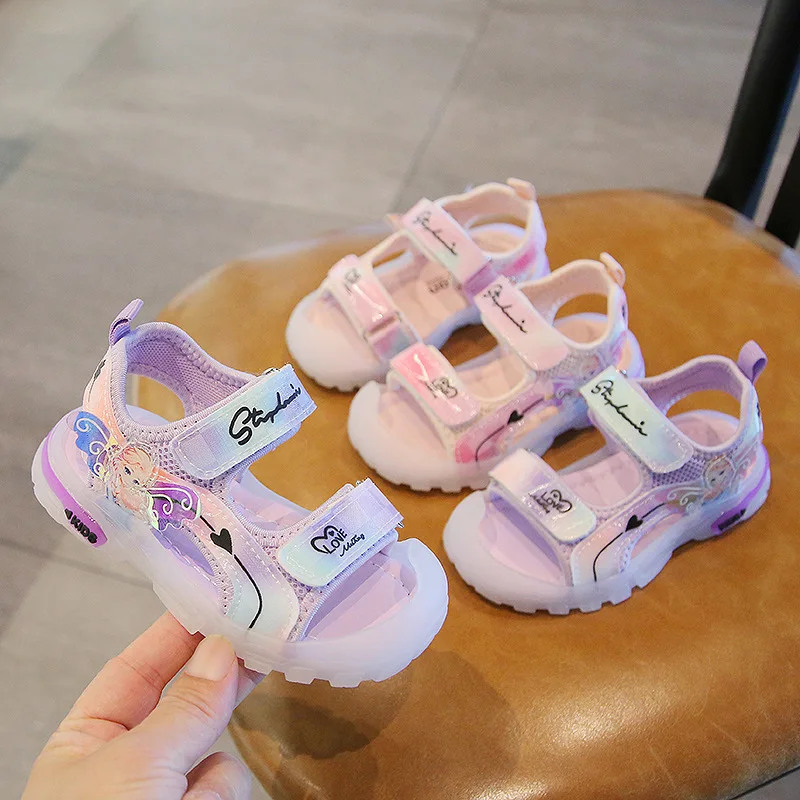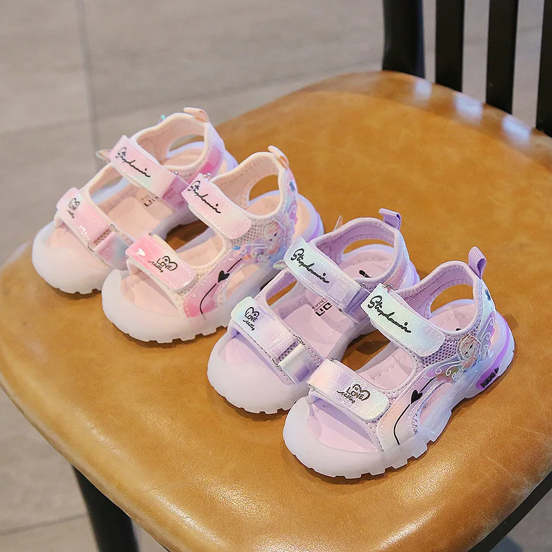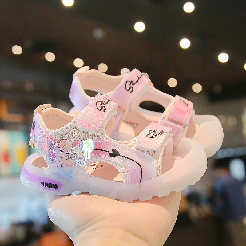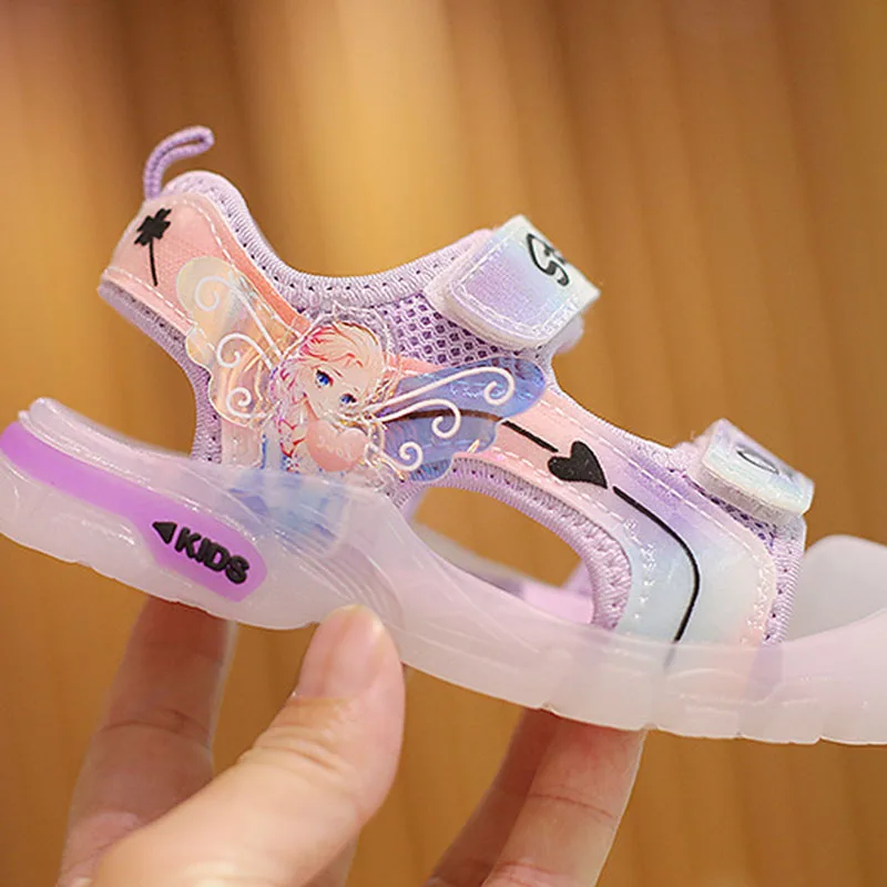Сандалии с открытым носком для девочек, светящиеся босоножки с мягк...