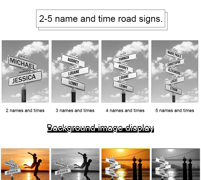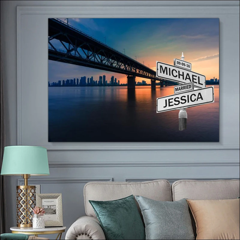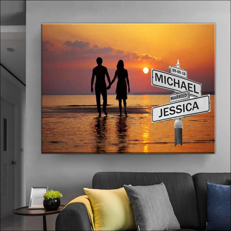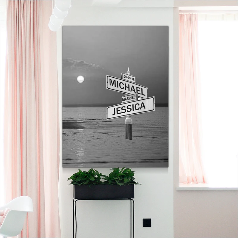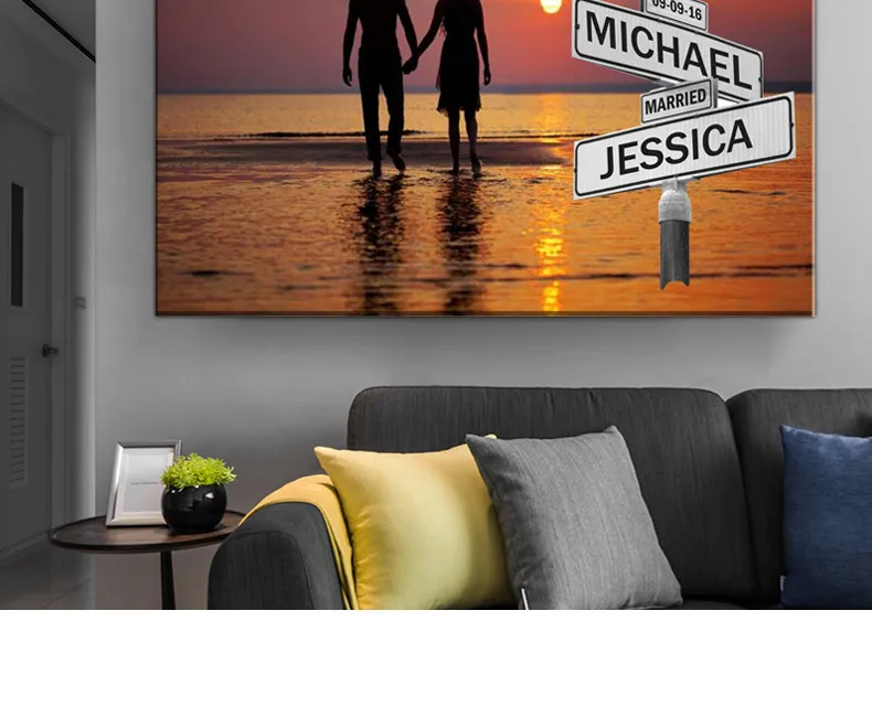 1. Используйте этот дорожный знак, напечатанный на индивидуальном холсте, чтобы создать длительную память, Персонализируйте специальные предметы с именами и датами.