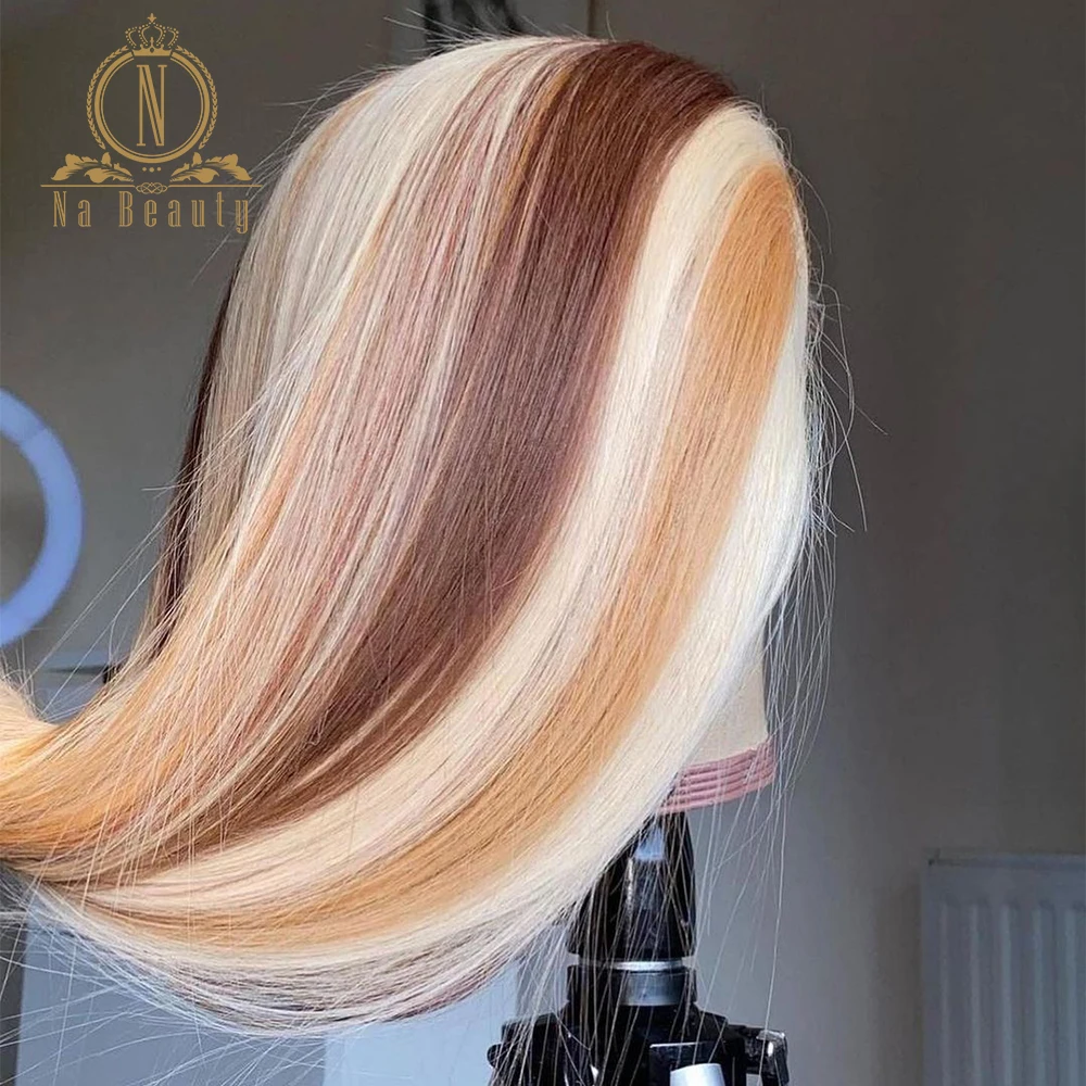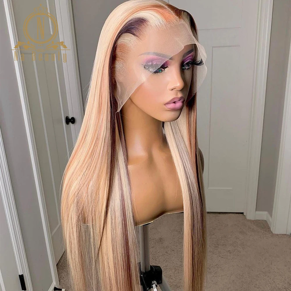 Хайлайтер 613, парик из человеческих волос коричневого и светлого цвета, волнистые волосы с эффектом омбре, HD, прозрачные кружевные передние парики для женщин, плотность 180, Nabeauty