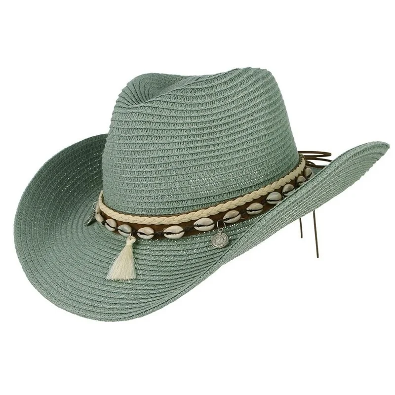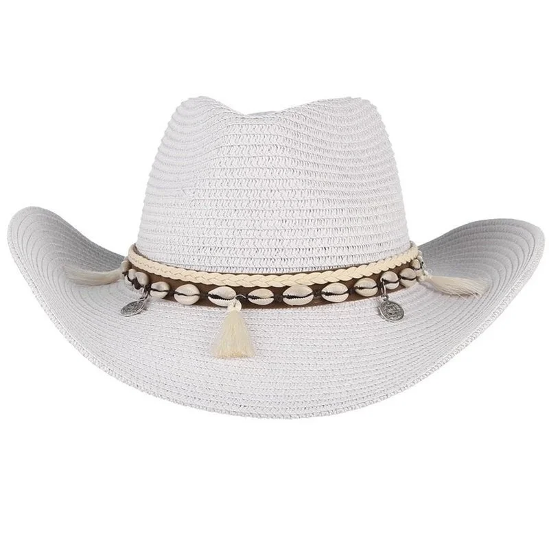 Шляпа с бахромой из ракушек для мужчин и женщин, соломенная ковбойская Панама в западном стиле, модная плетеная Солнцезащитная пляжная шапка панама женская шляпа женская летняя панама женская летняя