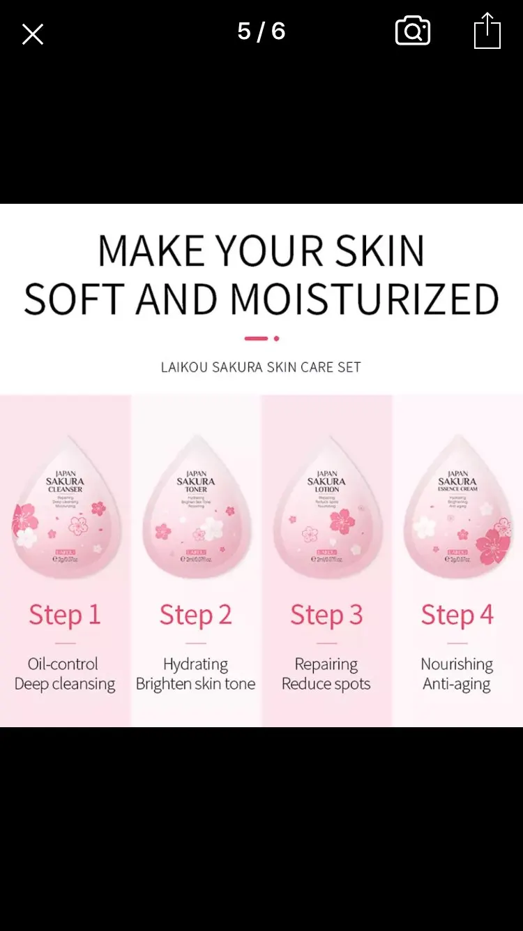 LAIKOU 4 шт. набор для ухода за кожей Сакура очищающее средство тон...