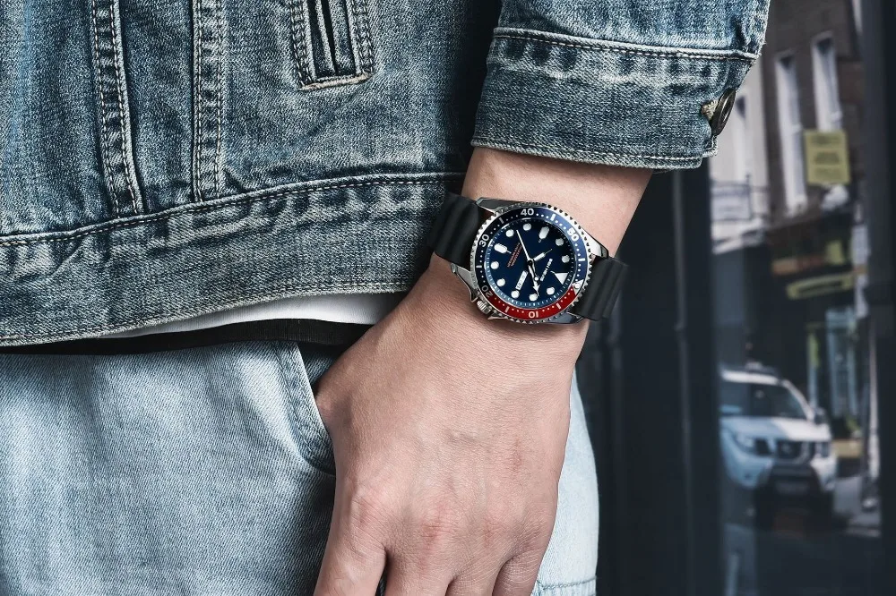 Мужские водонепроницаемые кварцевые часы на резиновом ремешке, в ст...