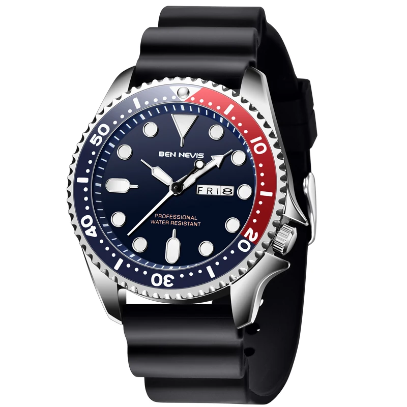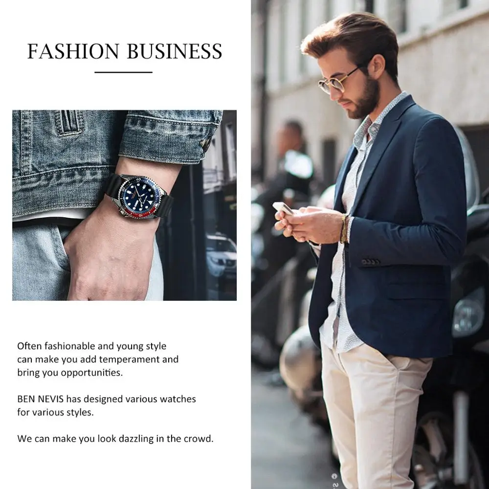 Бен Невис Новый Для мужчин часы для мужчин каучуковый ремешок кварцевые часы светящиеся стрелки Военная Униформа Водонепроницаемый наручные часы Relogios Masculinos