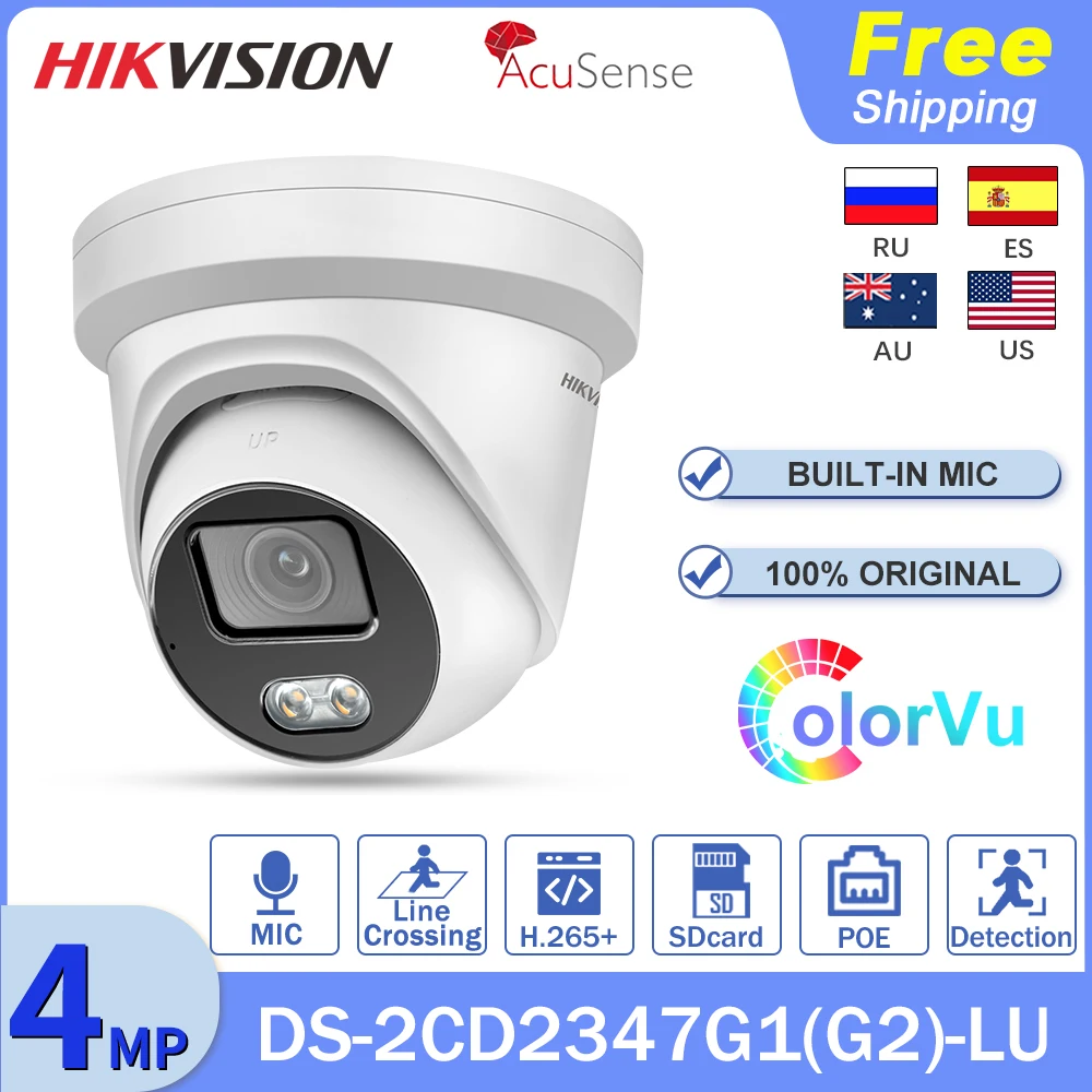 Оригинальная 4-мегапиксельная IP-камера Hikvision ColorVu, стандартная камера видеонаблюдения с микрофоном POE H.265 + Встроенная SD-карта
