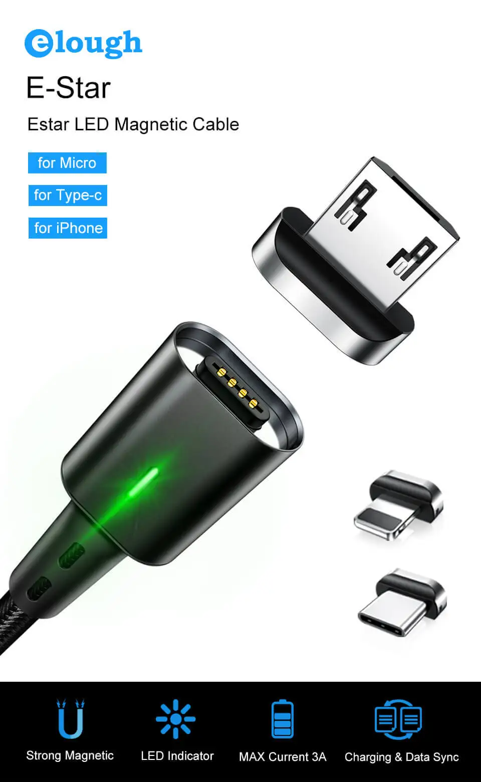 Магнитный кабель Elough, кабель для быстрой зарядки Micro USB C для iPhone 12 pro max 11 x xr xs 8 7 plus, Xiaomi note 10 9 Redmi QC 3,0 4.0 2.0 , быстрая зарядка на магните, Type C, провод для передачи данных, шнур