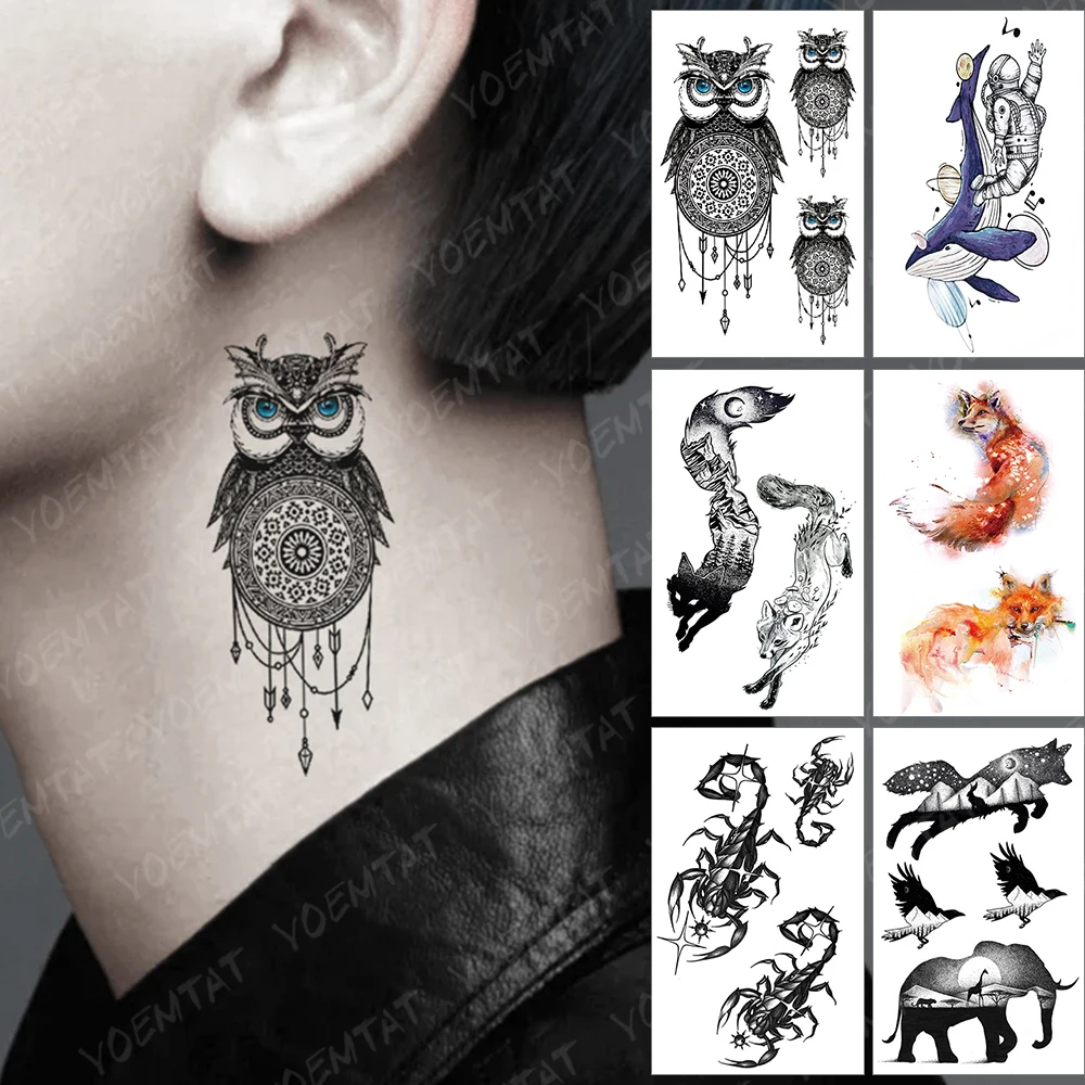 Водонепроницаемая Временная тату-наклейка Ловец снов Сова флэш-тату музыка лиса лес птица рука на запястье поддельные Татто для боди-арта женщин
