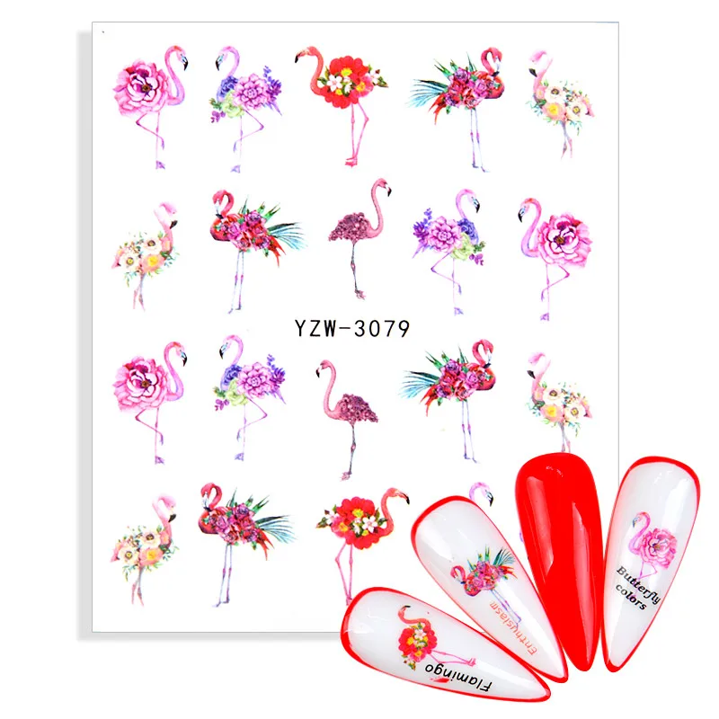 1 лист 2022 новый дизайн наклейки для ногтей цветок Фламинго красота слайдер цветение Красочные растения узор 3D Маникюр Наклейка татуировка