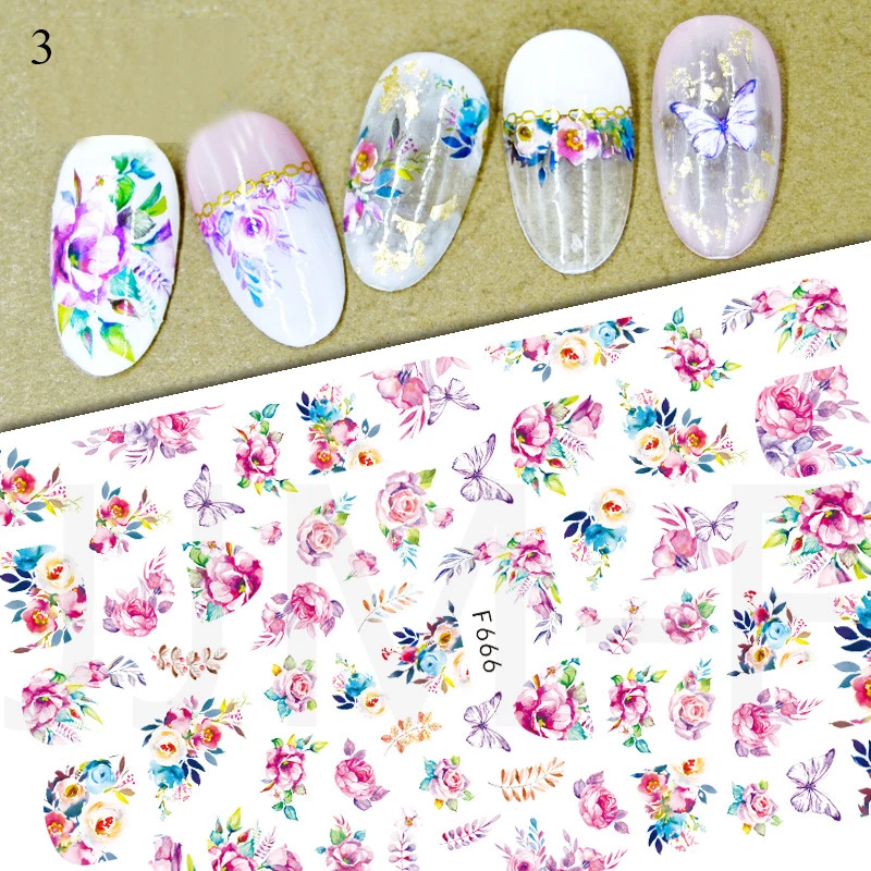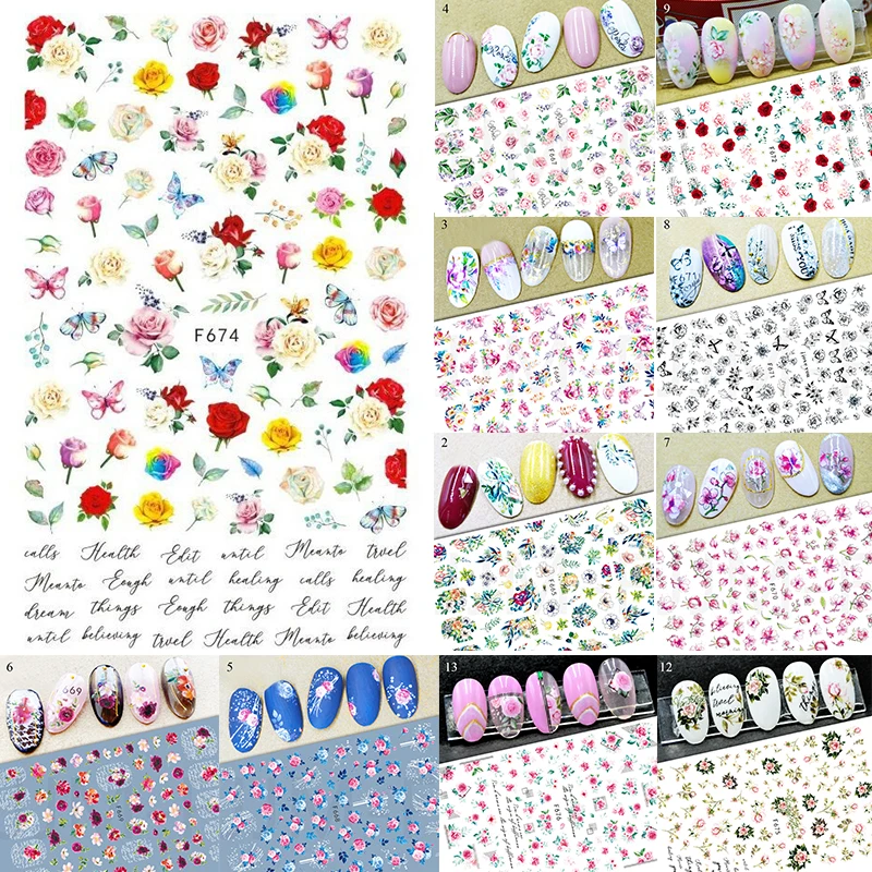 3D наклейки для ногтей, модные, с бабочкой, розовыми розами, цветами, украшения для ногтей, наклейки, слайдеры, аксессуары для маникюра