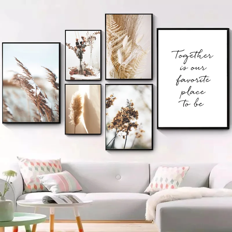 Бежевый Рид сухих цветов Растения Nordic Плакаты и принты настенный художественный холст PaintingLandscape настенные картины для Декор в гостиную