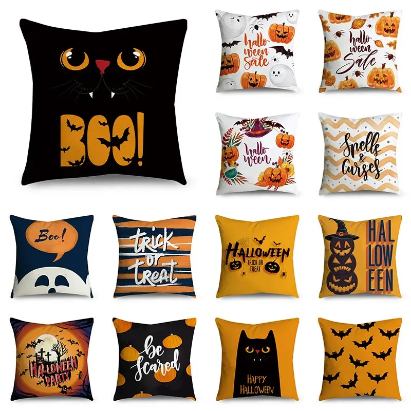 WZH, Хэллоуин, интересный рисунок, мультфильм, искусственная подушка, чехол для автомобиля, дивана, декоративная подушка, чехол, домашние подушки 45x45