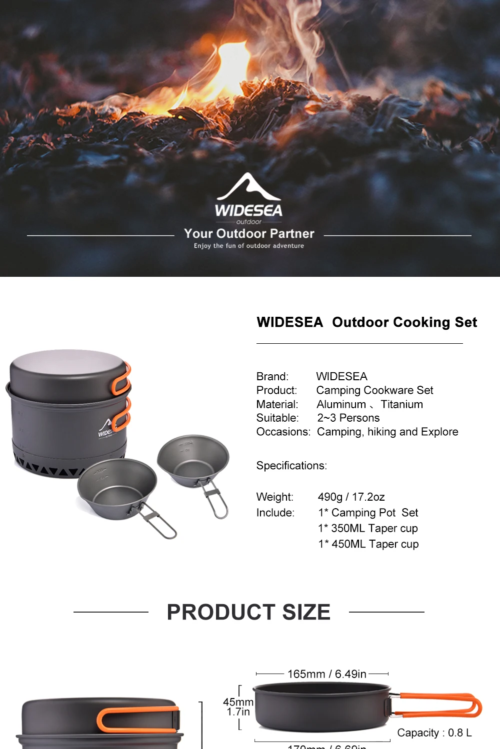 Набор посуды для кемпинга, титановая чашка