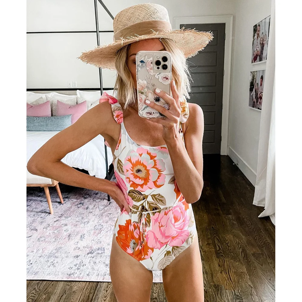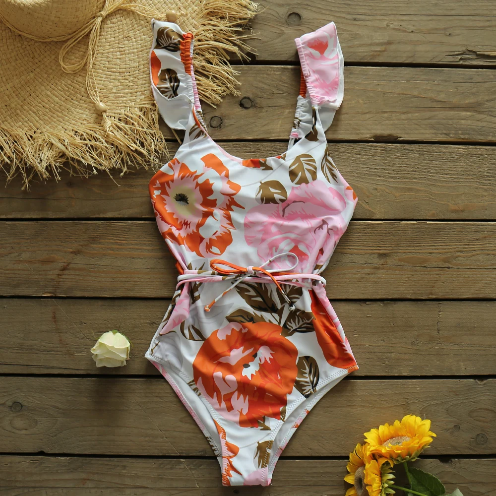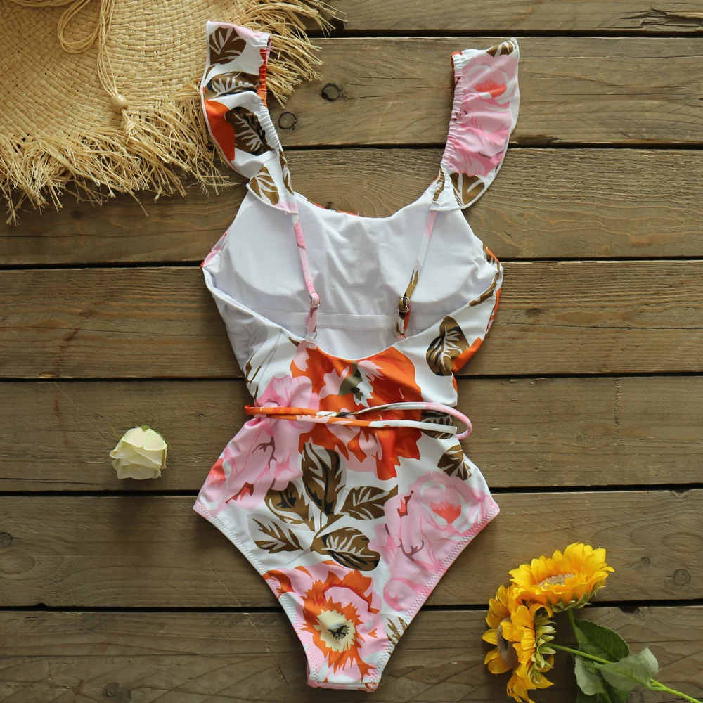 2021 новый сексуальный слитный купальник с цветочным принтом и обор...