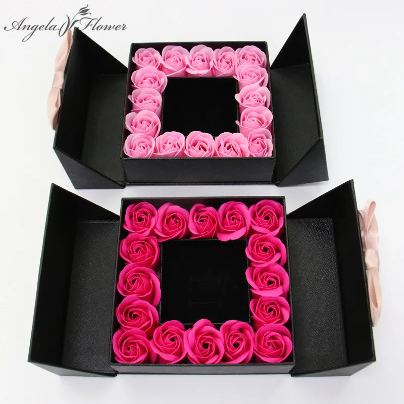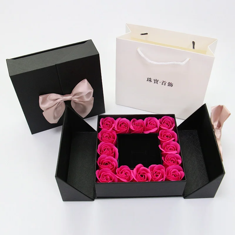 Двухдверная коробка с розочками, Подарочная коробка с мыльным цветком, ювелирное ожерелье, упаковка, коробка с бантом, подарок на день рождения, День Святого Валентина, украшение для дома