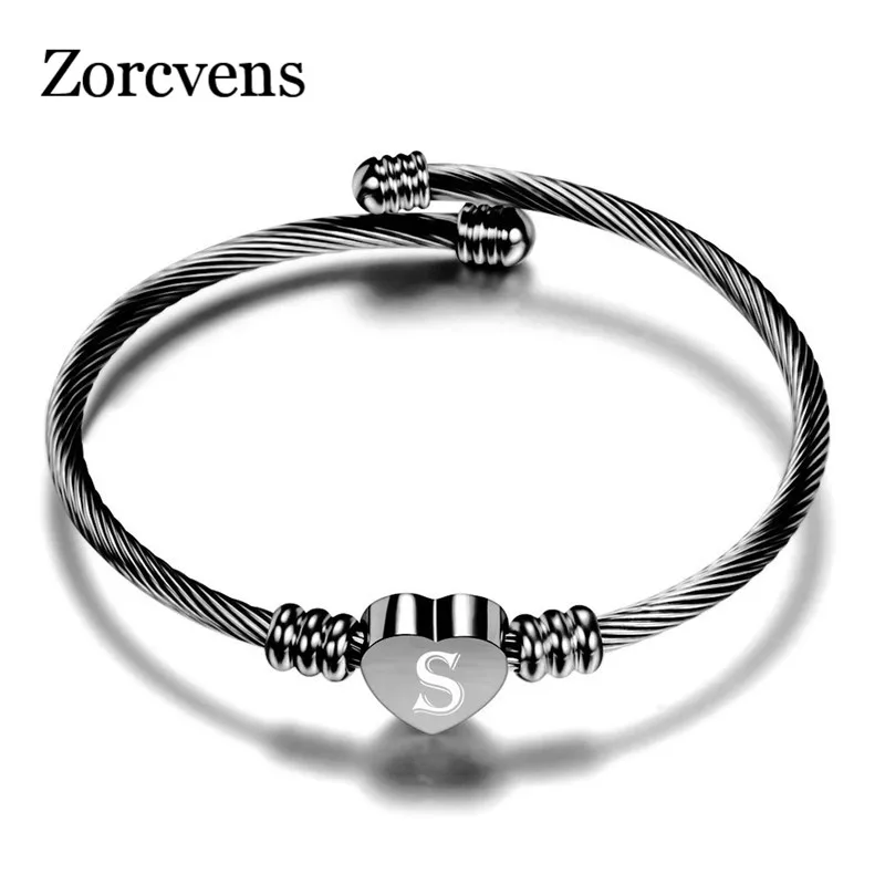 Новинка 2022, Модные Винтажные черные браслеты с буквами из нержавеющей стали в стиле панк от zorcins, украшения, браслет с буквами из искусственного алфавита в форме сердца для женщин