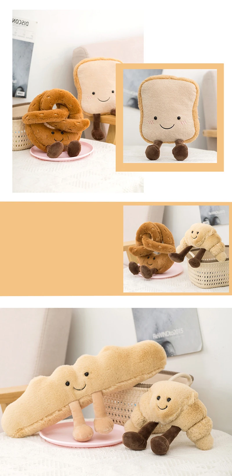 Новый стиль, милый плюшевый тост, хлеб, круассаны, багет, игрушка, ...