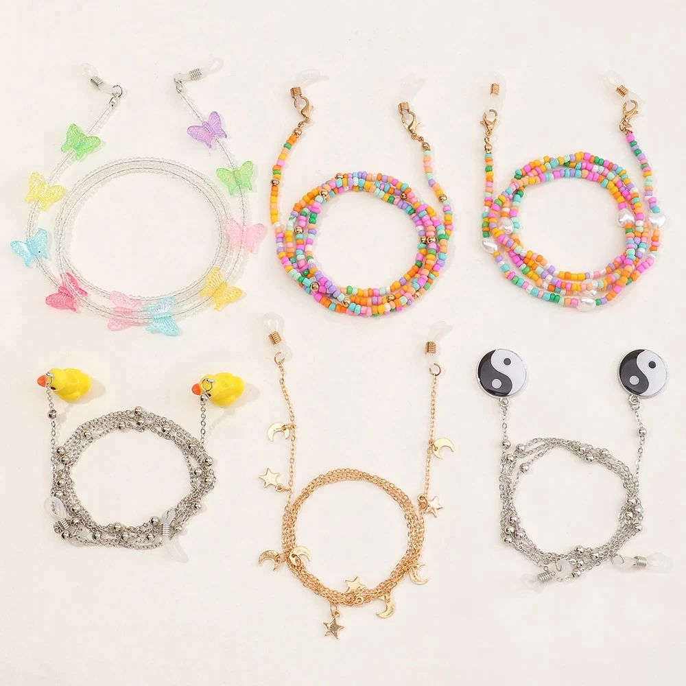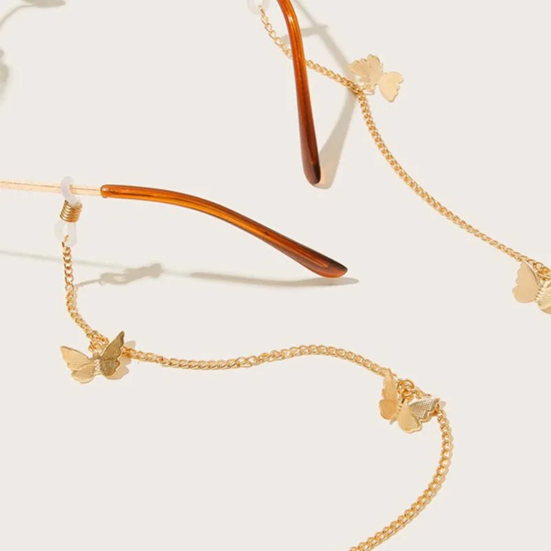 Модные женские солнцезащитные очки, 7 цветов, цепочка для очков с бабочкой, Нескользящие очки с кисточками из сплава, ювелирные изделия для девочек