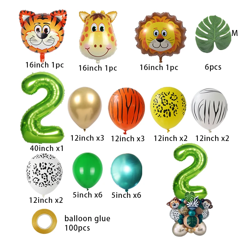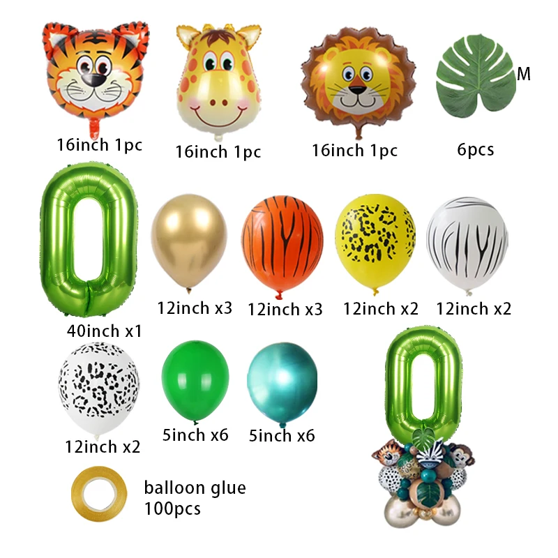 35 шт. с изображением животных из джунглей номер баллоны комплект для вечеринки в стиле сафари для дня рождения для маленьких мальчиков, рождественские украшения в виде милых животных воздушные шары Baby Shower поставки