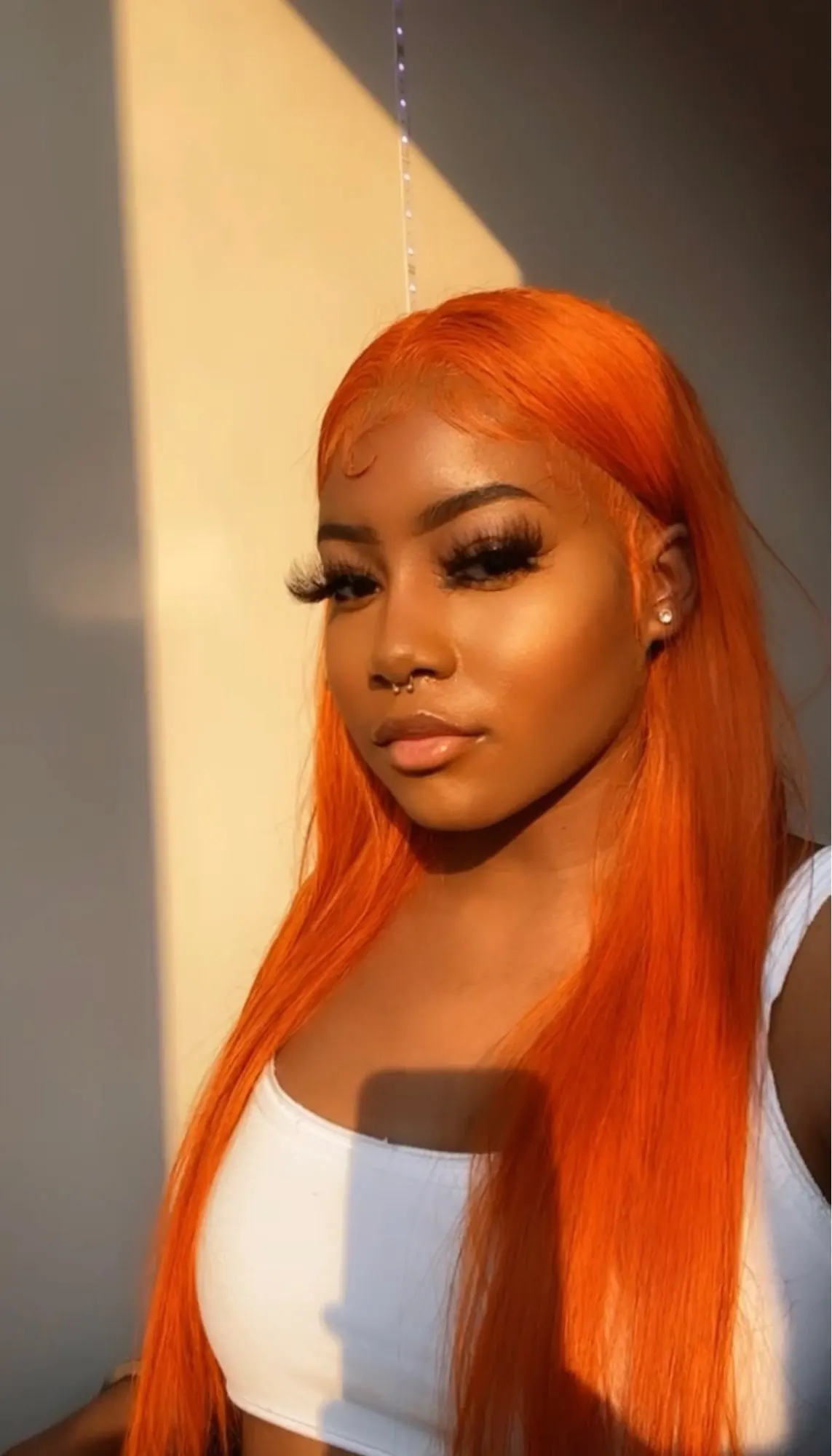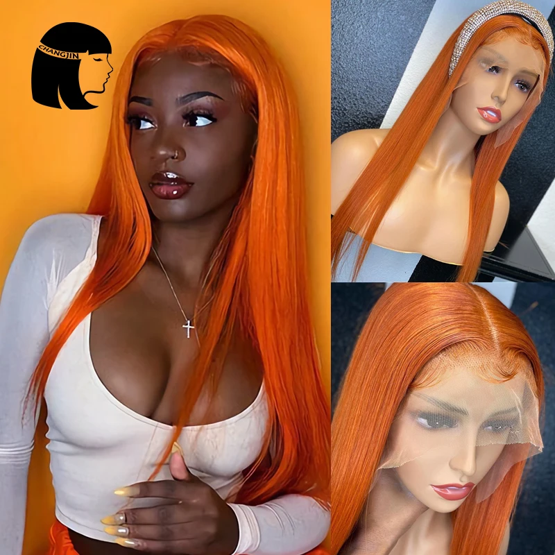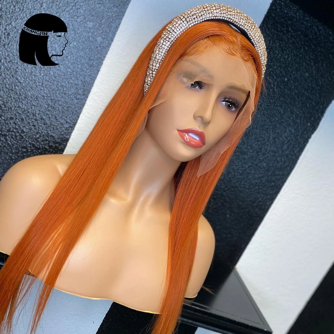 Имбирь оранжево-13X4 фронта шнурка человеческих волос парики с детскими волосами бразильские прямые волосы 4x4 закрытие кружева парики для женщин