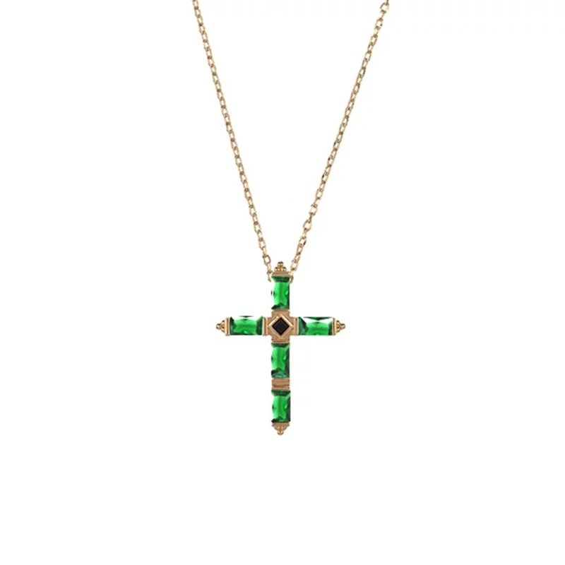 Женское Ожерелье MC с цветным зеленым цирконом, подвеска-крест, зве...