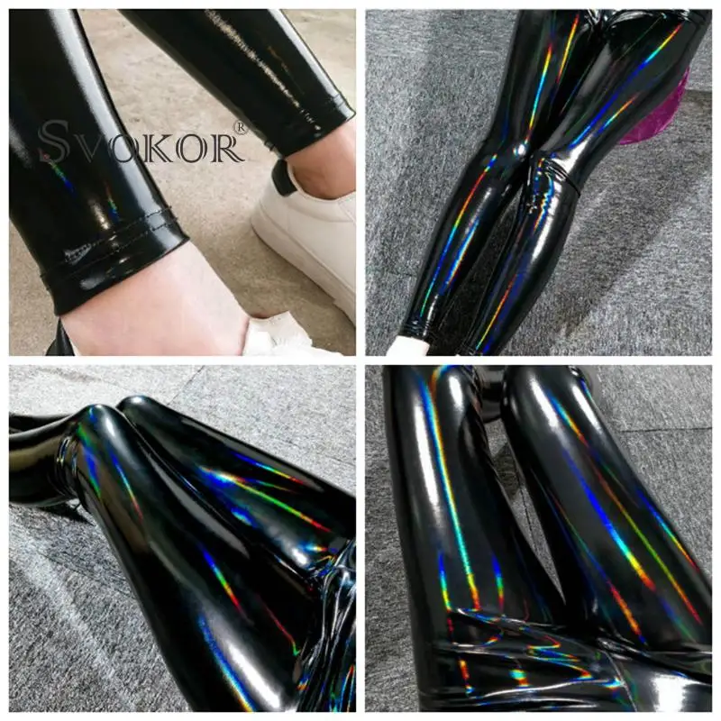 Женские леггинсы из искусственной кожи SVOKOR, черные обтягивающие леггинсы с высокой талией, модные леггинсы