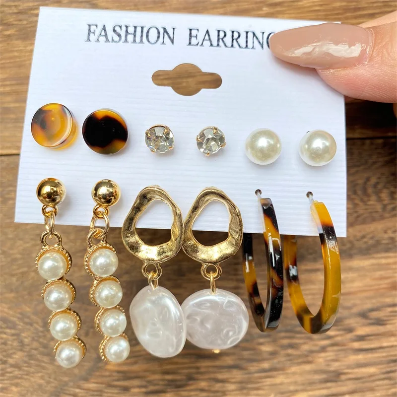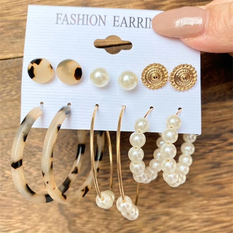 EN винтажные золотые серьги-кольца Комплект сережек для женщин с жемчугом для девочек, большие серьги для пирсинга, модные украшения 2021, новые подарки