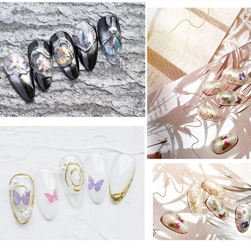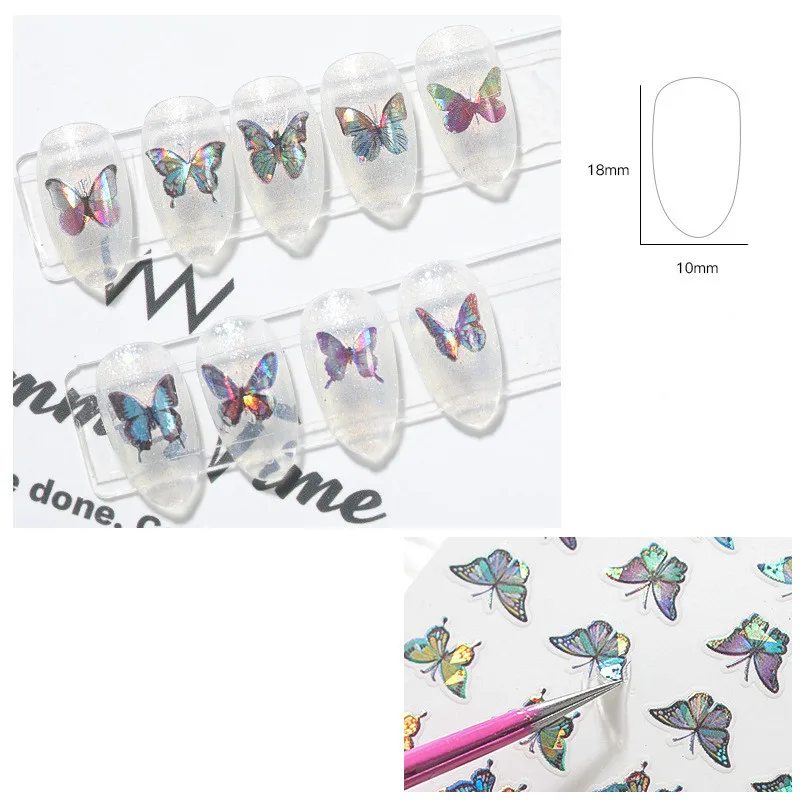 1 шт. голографические 3D наклейки-бабочки для дизайна ногтей клейки...