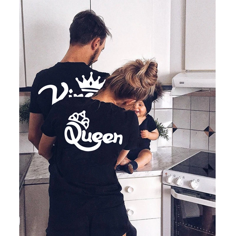 Семейная футболка для мамы, папы и ребенка, Одинаковая одежда для короля, королевы, принцессы, одинаковые наряды, одежда для маленьких девочек и мальчиков