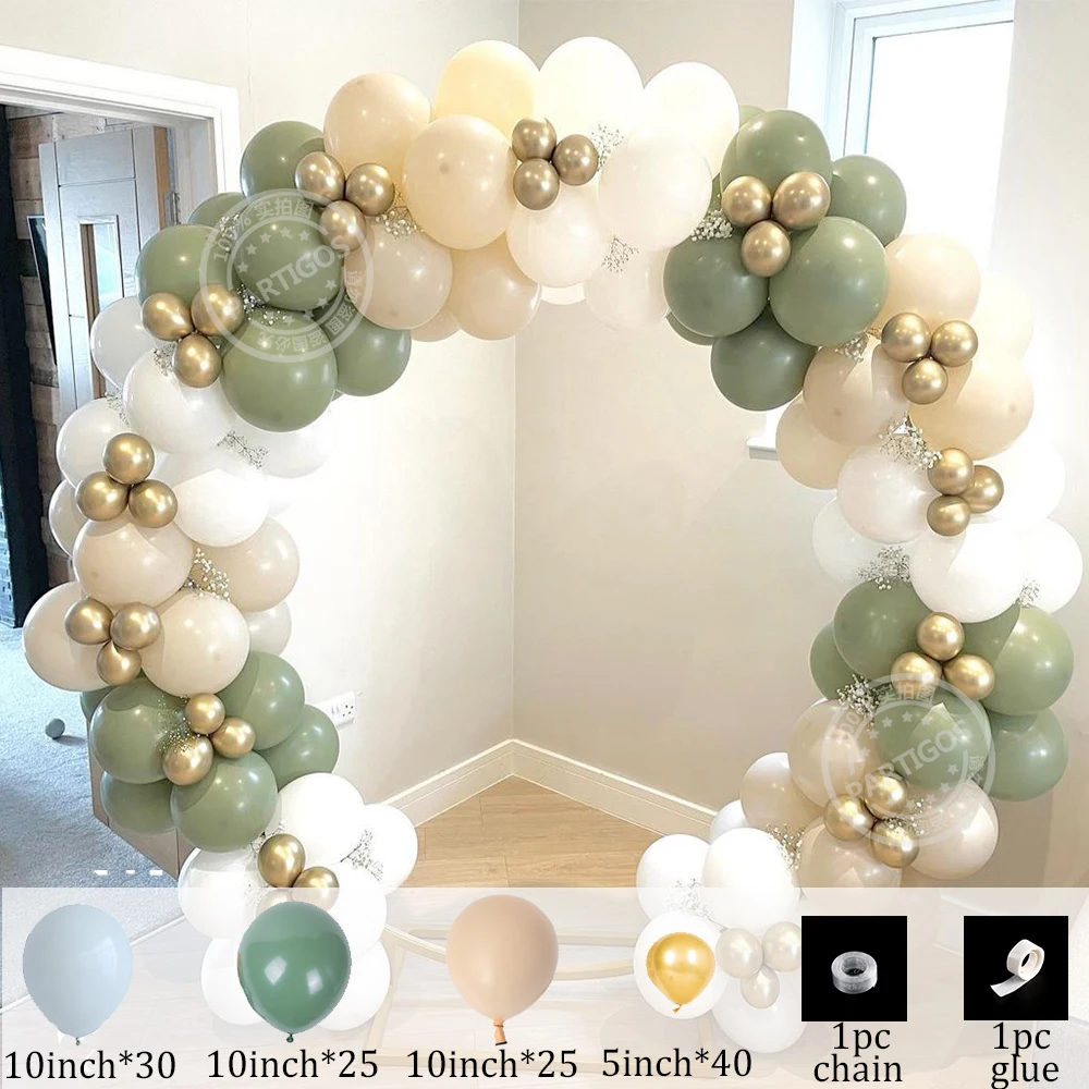 122 шт. =30 шт 10 дюймовые белые шары25 шт 10 дюймов авокадо зеленые шары25 шт 10 дюймов кожа с черными шарамиДля выведения токсинов, 40 шт 5 дюймов; Декор в виде золотистых металлических воздушных шаров1 шт. цепочка для воздушных шаров1 шт. клеевая точка