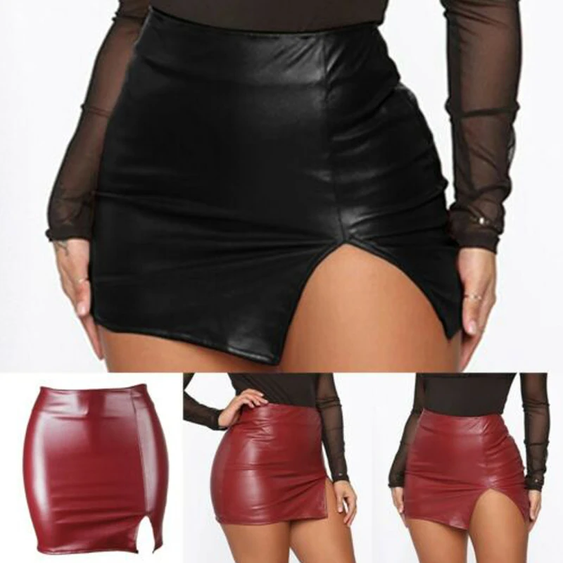 * Описание товара: сексуальные женские мини-юбки из искусственной кожи с высокой талией, облегающая Клубная одежда