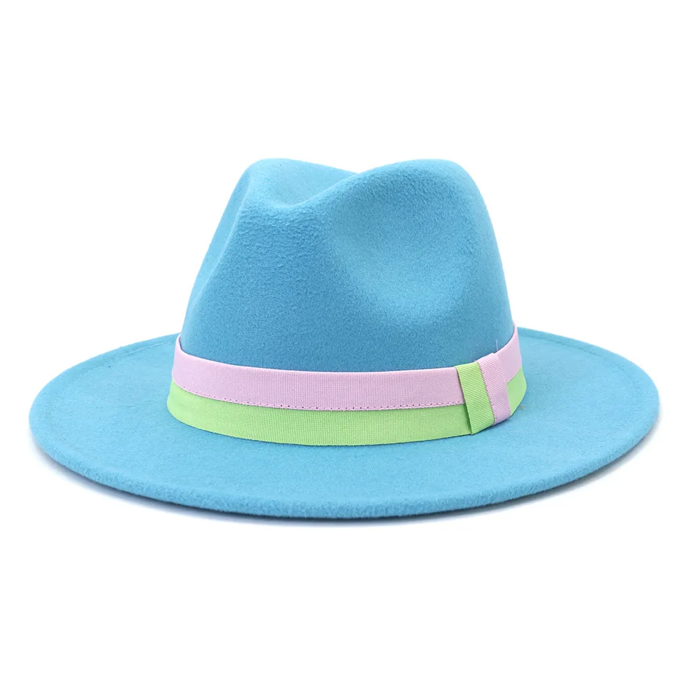 Оптовая продажа 2021, шляпа Федора, красочные веревочные аксессуары, красочная Западная сценическая джазовая шляпа, кепка