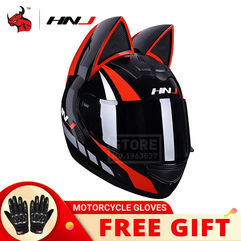Шлем мотоциклетный HNJ для женщин, мотоциклетный шлем, закрытый на все лицо, черный