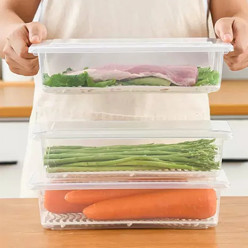 Еда свежий ящик для хранения контейнеров Кухня органайзер для холодильника Чехол Съемный дренажный лоток для овощей и фруктов рыбы мяса Органайзер