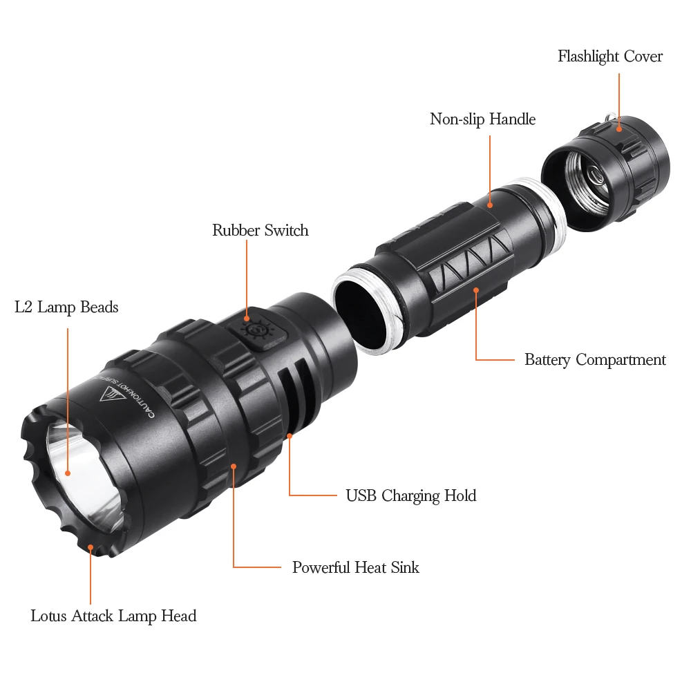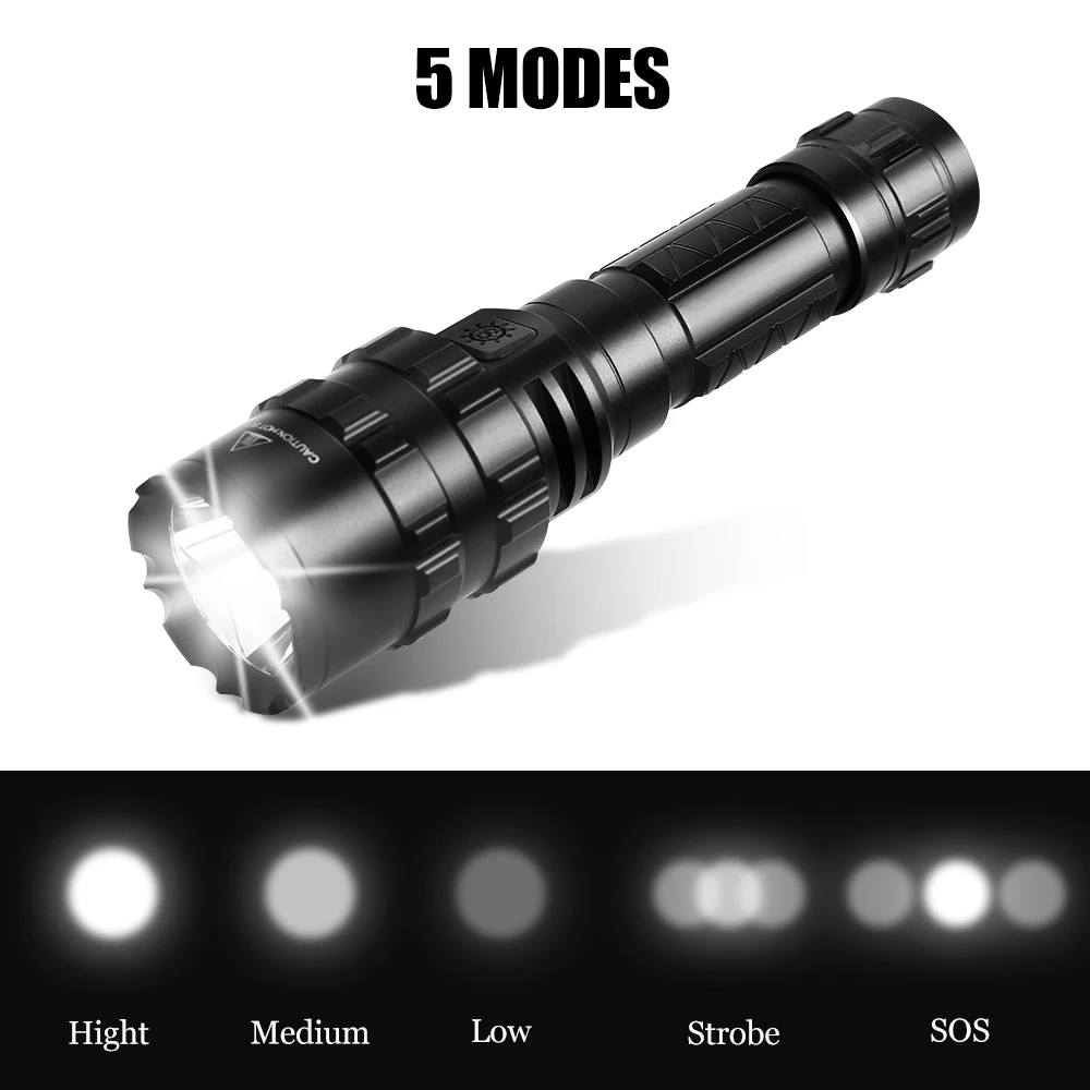 100% новый высококачественный Тактический фонарь из алюминиевого сплава. 5 режимов можно выбрать: сильный светильник, средний Светильник, низкий светильник, быстрая вспышка, медленная вспышка. 1600 люменов, расстояние освещения до 500 м. IPX-6 водонепроницаемый, также можно использовать в дождливые дни. Питание от литиевой батареи 18650, работает более 6 часов и может заряжаться через USB. Светильник-вспышка может использоваться в качестве индикатора питания, красный светильник указывает на низкую батарею, а зеленый светильник-на достаточную мощность. Головка лампы в форме лотоса очень жесткая и используется для обеспечения безопасности или в критическое время разбивает окна. Оснащенная вспышкой светильник зажим и пульт дистанционного управления переключатель, который может быть установлен на вашем пистолет-распылитель для использования в качестве средства светильник. Подходит для различных случаев, кемпинга, пеших прогулок, рыбалки, езды на велосипеде, охоты и т. д., все это будет хорошим выбором.