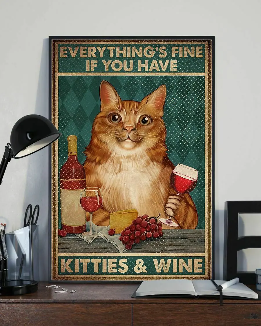 Все в порядке, если у вас есть котята и винный Кот, металлическая винтажная жестяная вывеска, плакаты в стиле ретро, Настенный декор, железная живопись, Настенный декор