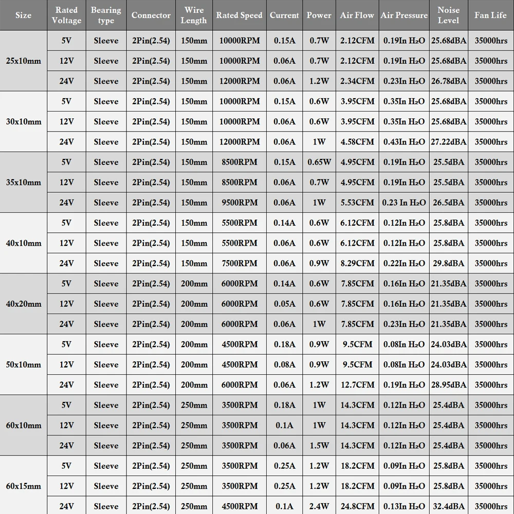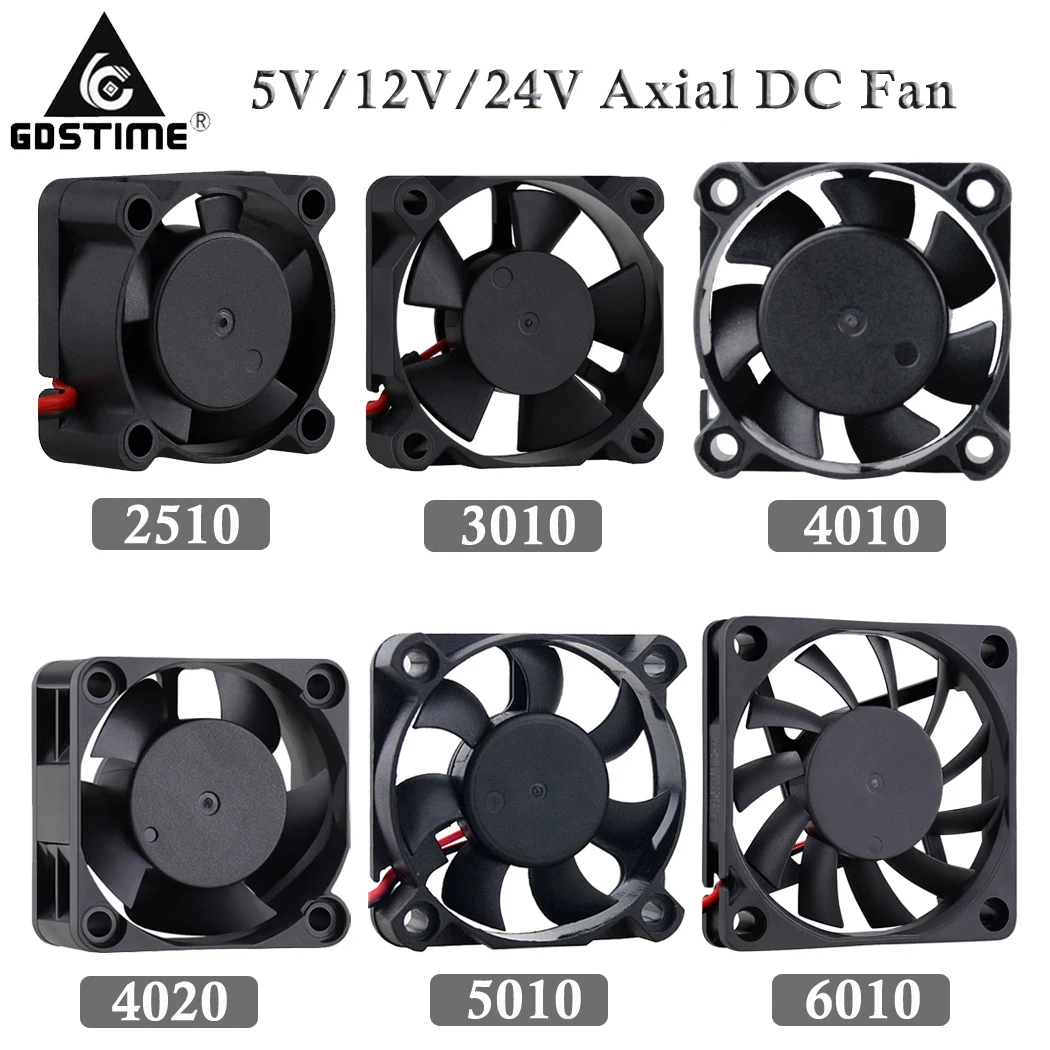 Детали для 3D-принтера, 2 шт., охлаждающий вентилятор 2510 3010 4010 4020 5010 6010 5 в 12 В 24 В, 2-контактный втулка, бесщеточный осевой радиатор постоянного тока, охлаждающий вентилятор