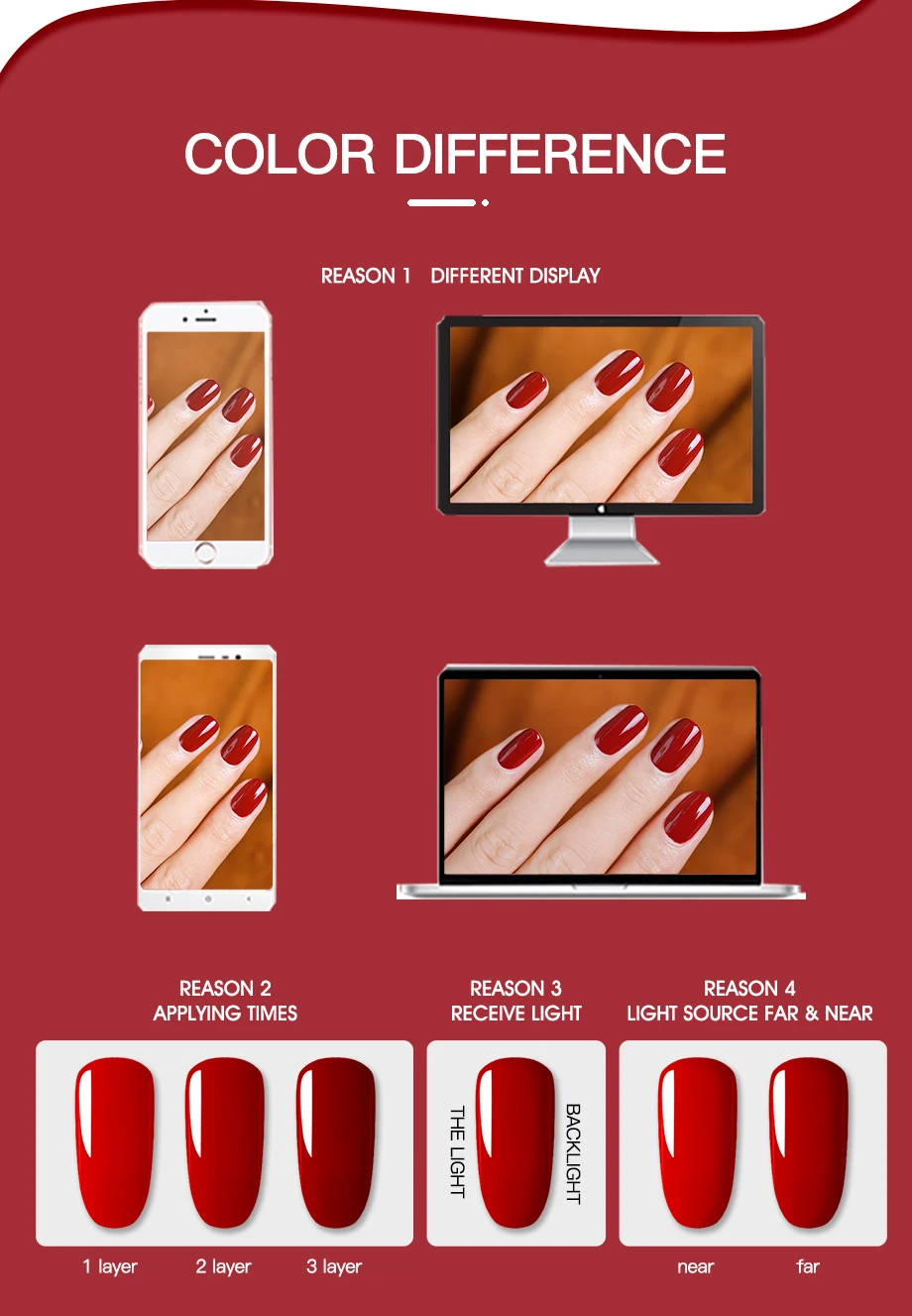 -Качество-наш первый приоритет.-Светильник, почти без запаха (только верхнее покрытие и основа имеют умеренный запах), мы применяем только органическую текстуру для защиты вашего здоровья.-Цвет будет сиять до 30 дней.-Цвета на выбор, подходят для всех случаев.Шаг за шагом:-1. Форма ногтя. Слегка смочите поверхность ногтевой пластины. Дезинфицировать.-2. Нанесите базовый слой основы от кутикулы до свободного края (не забудьте запечатать край ногтя). Высушите ногти под светодиодный светильник в течение 10 секунд или УФ-светильник в течение 2 минут.-3. Нанесите тонкое пальто отмачиваемого геля на выбор. Свободный край крышки. Лечение: 30 секунд в светодиодный светильник, или 2 минуты в УФ-лампе.-4. Повторите 2-е тонкое покрытие отмачиваемого гель-лака на ногти. Высушите под светодиодный лампой в течение 30 секунд или УФ-светильник в течение 2 минут.-5. Нанесите верхнее пальто. Свободный край крышки. Лечение: 30 секунд в светодиодный светильник.-6. Удалите липкий остаток на ногтях с помощью очищающего средства. Затем нанесите питающее масло кутикулы для увлажнения влаги в кутикулу и кожу вокруг ногтя.Для удаления:-1. Отмачивайте ногти в акриловом удалителе в течение 5 минут.-2. Аккуратно Наденьте на каждый ноготь всю эмаль для ногтей.Внимание:1. Объем-7 мл. Поскольку емкость бутылки составляет более 7 мл, гель для ногтей не будет полностью заполнен бутылкой!2. Плотно закрываются. Держите подальше от солнечного света. Хранить в недоступном для детей месте.