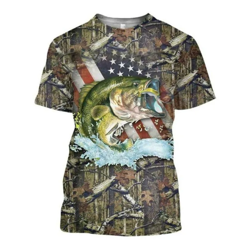 Мужская и женская футболка с 3D рисунком рыбы армейская зеленая дыш...