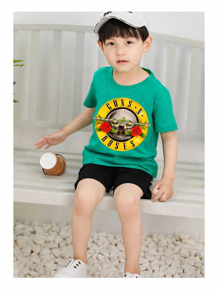 Оригинальная детская футболка с принтом рок-группы Gun N Roses, топы с коротким рукавом для мальчиков и девочек Rocksir Music, повседневная детская одежда