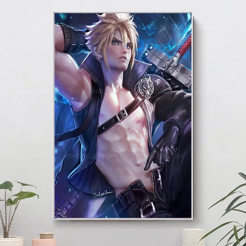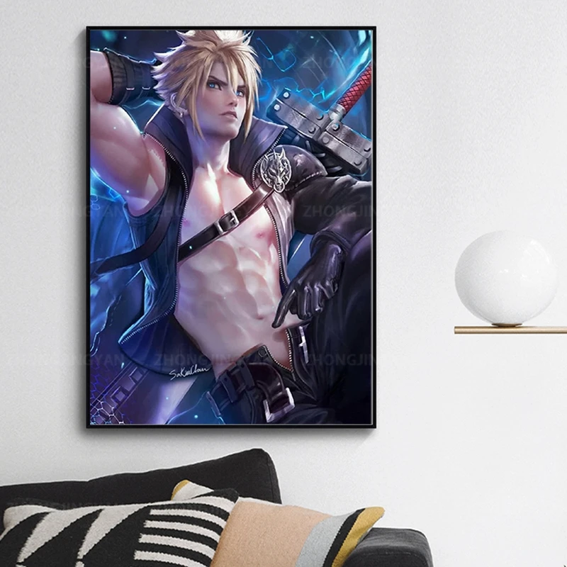 Final Fantasy 7 наряд в стиле известных брендов облако художественной росписи Плакат декоративной живописи картины на холсте Гостиная Плакаты Спальня живопись