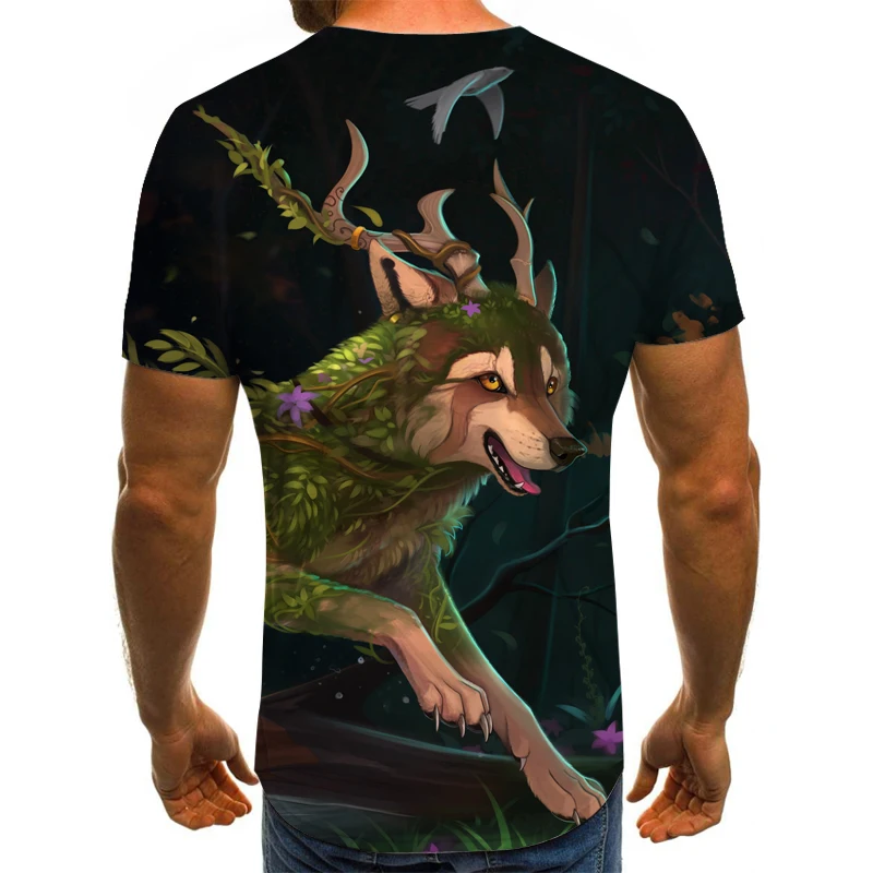 Мужская свободная футболка с коротким рукавом, пуловер с 3D-принтом абстрактного волка и круглым вырезом, мужская повседневная Уличная модная футболка XXS-