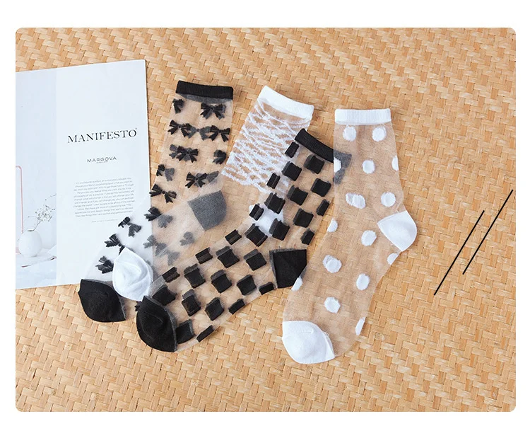 Носки женские весенне-летние, тонкие, прозрачные, черные, белые