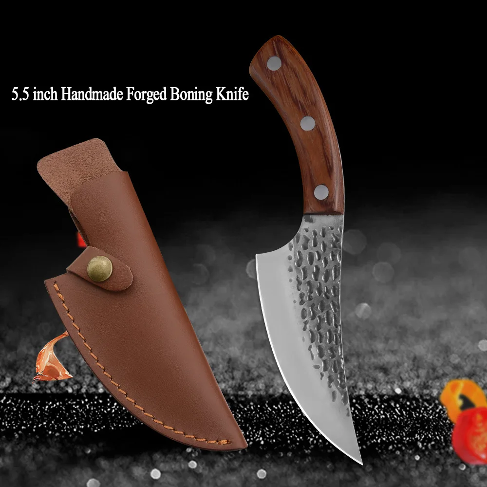 5,5 дюймовый кованый нож для нарезки костей, походный сербский нож, полный кованый кухонный нож ручной работы шеф-повара, мясника, кожаный ремешок