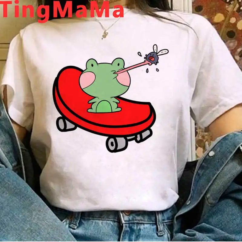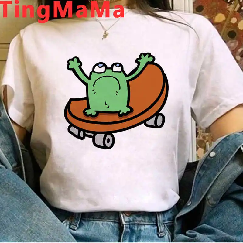Женская футболка в стиле Харадзюку, с принтом лягушки
