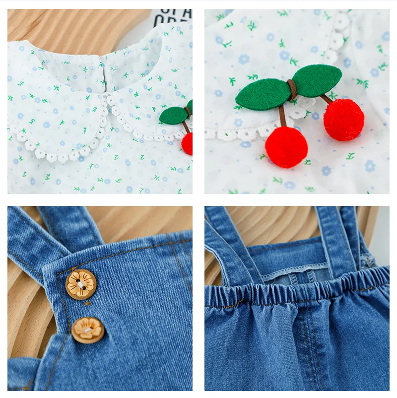 Одежда для маленьких девочек, летняя Милая одежда с пышными рукавами для маленьких девочек, кружевной наряд с лацканами и цветочным принтом, сиамские слинги, милый костюм принцессы из 2 предметов