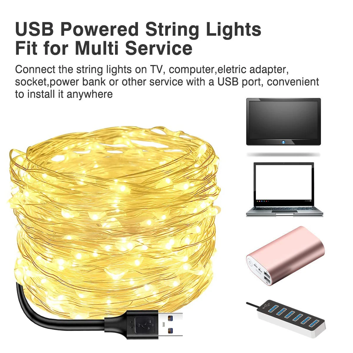 Светодиодная гирлянда с USB, светодиодные фонари, уличное свадебное украшение, садовое освещение, уличные рождественские огни, украшения, сказочные огни