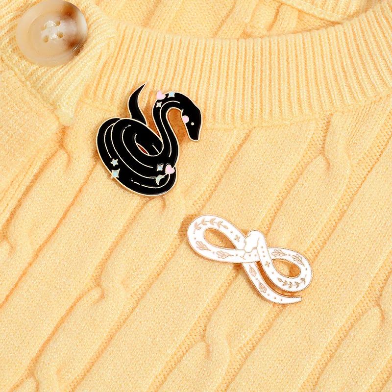 Черно-белая эмалированная булавка в виде змеи из мультфильма, брошь...