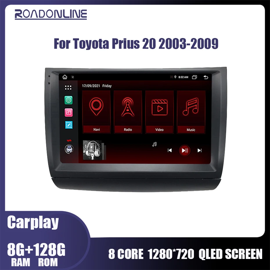 Автомобильный радиоприемник для Toyota Prius 20 2003-2009, Авторадио Android 10,0, 8 ядер, 6 ГБ, 128 ГБ, 2din, Gps-навигация, мультимедийный плеер Carplay