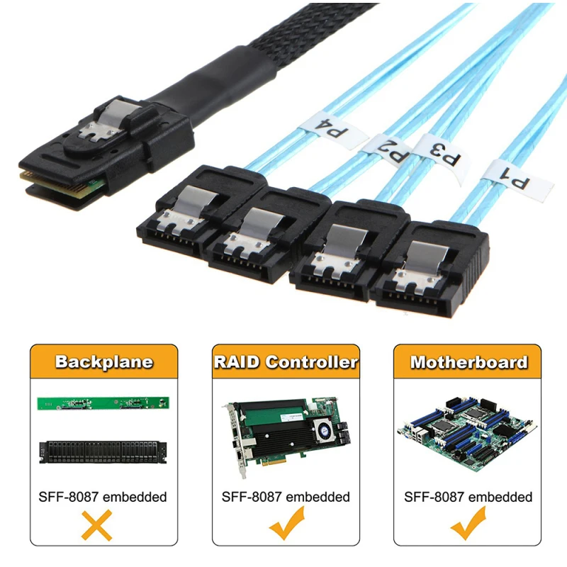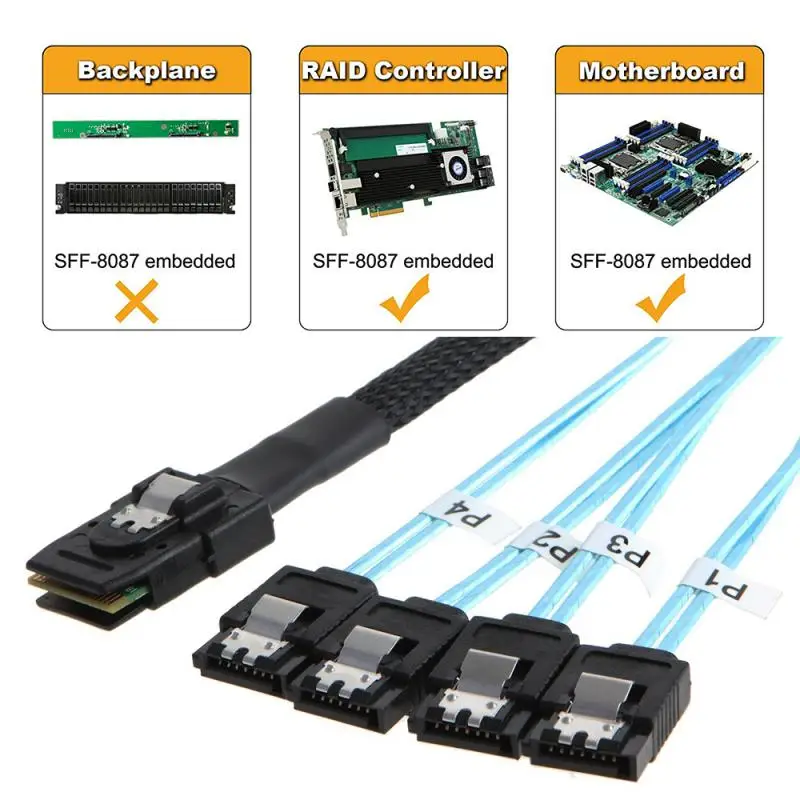 Интерфейс SFF-8087 в основном используется для карты массива MINI SAS 4i, как внутренний кабель SAS,