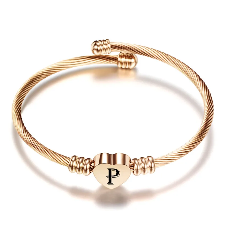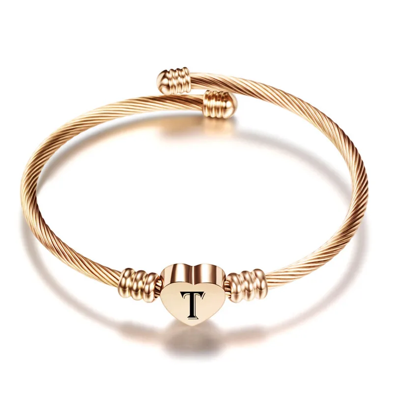 Браслет женский из нержавеющей стали, с буквами, в виде сердца
