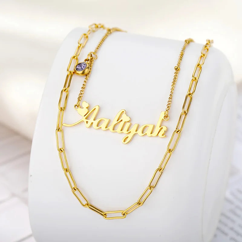 Двойной пользовательское имя ожерелья из камня по дате рождения для женщин друг Золотая цепь из нержавеющей стали ожерелье с подвеской на день рождения украшения 2021 BFF